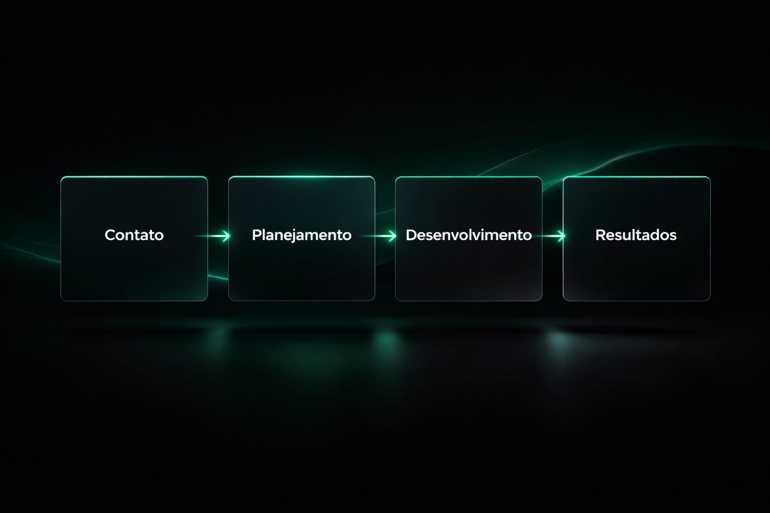 Desenvolvemos landing pages, sites institucionais, e-commerces, sistemas personalizados, dashboards e automacoes com IA, sempre adaptados ao objetivo e ao momento de cada negocio.